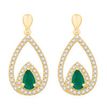 Gemminded 10K Yellow Gold 5x3 mm Pear Shaped Genuine Emerald Tear Drop Dangeling Earring with 0.26 Carat Diamond Accent - Friction Back