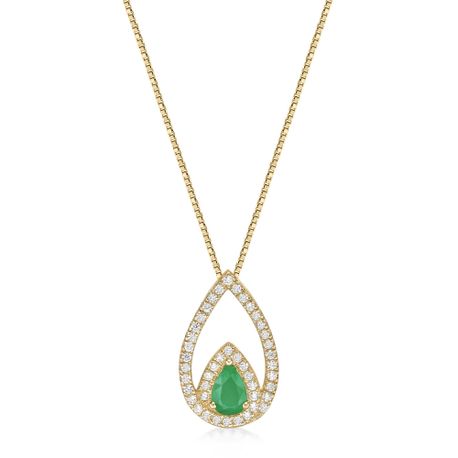 Gemminded 10K Yellow Gold 5x3 mm Pear Shaped Genuine Emerald Tear Drop Pendant with 0.27 Carat Diamond Accent -18 Inch BoX Chain