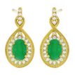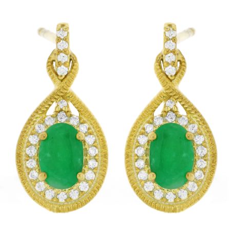 Gemminded 10K Yellow Gold 7x5 mm Oval Cut Genuine Emerald Statement Earrings with 0.19 Carat Diamond Halo - Friction Back