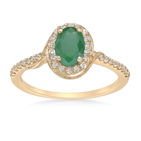 Gemminded 10K Yellow Gold 7x5 mm Emerald Cut Genuine Emerald Statement Ring with 0.23 Carat Diamond Accents