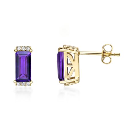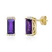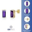 Gemminded Rose Gold Plated Sterling Silver 8x4 mm Baguette Amethyst Earrings with Created White Sapphire - Friciton Back