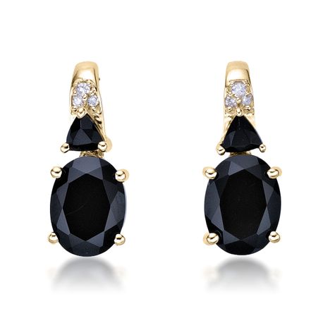Gemminded 10K Yellow Gold 8x6 mm Cushion Cut Black Onyx Earrings with Created White Sapphire Accent - Friciton Back