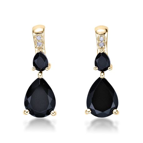 Gemminded 10K Yellow Gold 8x6 mm Pear Shaped Black Onyx Dangeling Earrings with 0.02 Carat Diamond Accent - Friciton Back
