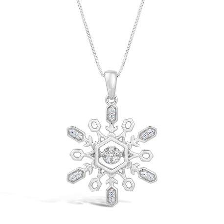 925 Sterling Silver 0.01 cttw Diamond Snowflake Pendant - 18 Inch Box Chain