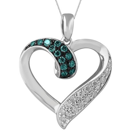 Indulge in the enchanting allure of our 925 Sterling Silver 0.38 Carat Blue and White Diamond Heart Shaped Pendant adorning your neckline. This elegant piece features a sparkling blue diamond heart embraced by shimmering white diamonds, exuding timeless sophistication. The 18-inch box chain with a lobster claw closure ensures a secure and comfortable wear. Elevate your style with this stunning pendant, a perfect gift for that special woman who appreciates luxury and elegance.