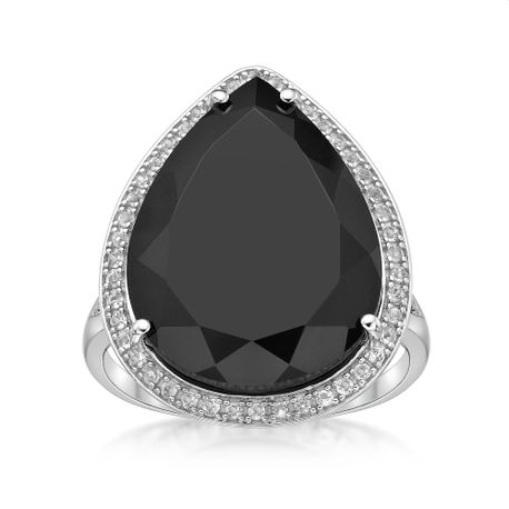 Gemminded 925 Sterling Silver 20x15 Pear Shape Black Onyx Ring with White Topaz Accent