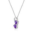 Elevate your style with our 925 Sterling Silver 5MM Double Heart Amethyst Pendant. Designed for women, it features interlocked heart-shaped amethyst gemstones, symbolizing spirituality and calmness. The sterling silver setting adds elegance, while the diamond accent sparkles with brilliance. Suspended from an 18-inch sterling silver box chain, this pendant exudes feminine charm. Perfect for any occasion, it allows women to express their unique style with timeless beauty.