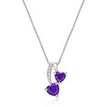 Geminded 925 Sterling Silver 5MM Double Heart Amethyst Pendant with 0.01 Carat Diamond Accent - 18 Inch Box Chain