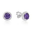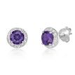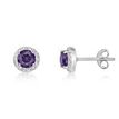 Gemminded 925 Sterling SIlver 5MM Round Amethyst Stud Earrings with White Topaz Halo