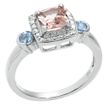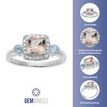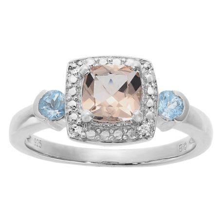 Gemminded 925 Sterling Silver 6 mm Cushion Cut Morganite Ring with 0.02 cttw Diamond and Aquamarine