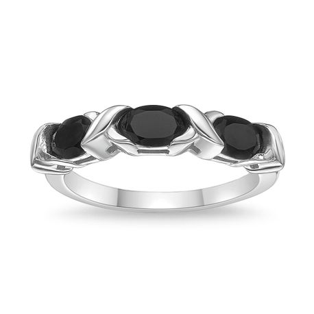 Gemminded 925 Sterling Silver 6x4 MM Oval Cut Black Onyx Three-Stone Ring