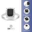 Gemminded 925 Sterling silver 8x6 MM Emerald Cut Black Onyx Ring with White Topaz Accent