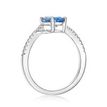 Gemminded 925 Sterling Silver 8x6 MM Oval Cut Blue Topaz Solitare Ring with Created White Sapphire Semi-Eternity