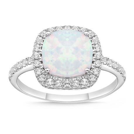 Elegantly designed for the modern woman, our 925 Sterling Silver 9MM Cushion Cut Created Opal Ring with Created White Sapphire Accent is a true showstopper. Crafted with precision and finesse, this ring features a vibrant multi-colored opal surrounded by sparkling white sapphire. Made with 925 sterling silver, this ring is not only stunning but also durable. Whether you're attending a formal event or simply want to add a touch of elegance to your everyday look, this ring is the perfect choice.