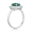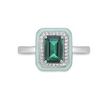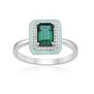 Gemminded 925 Sterling Silver 9x7 Octagon Cut Created Emerald Ring with Created White Sapphire and Green Enamel Halo