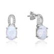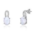 Elevate your style with these stunning 925 Sterling Silver earrings featuring a 9x7 Oval Cut Created Opal adorned with shimmering Created White Sapphire accents. The friction back closure ensures a secure and comfortable fit for everyday wear. Perfect for the modern, elegant woman who appreciates timeless sophistication with a touch of sparkle. Add a touch of luxury to any outfit with these versatile and eye-catching earrings.