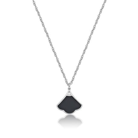 Gemminded 925 Sterling Silver Black Onyx and Cubic Zirconia Fan Pendant Necklace with Rhodium Plating 18 Inch Chain Lobster Claw