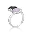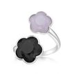 Gemminded 925 Sterling Silver Black Onyx and Pink Quartz Open Bypass Five Petal Flower Ring