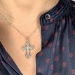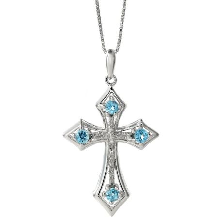 Gemminded 925 Sterling Silver Blue Topaz and 0.03 cttw Diamond Cross Pendant - 18 Inch Box Chain