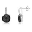 Gemminded 925 Sterling Silver Checkerboard Cushion Cut Black Onyx Earrings with White Topaz Accent