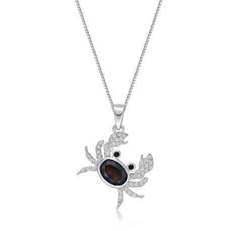 Add a touch of elegance to your jewelry collection with this stunning crab pendant. Made from 925 sterling silver, this pendant features an exquisite 8x6 oval cut garnet, surrounded by white topaz accents. The red stone symbolizes passion and love, making it the perfect gift for that special someone. The 18 inch box chain adds a sleek and stylish touch, making this versatile piece that can be dressed up or down. Crafted especially for women who appreciate fine craftsmanship and timeless design.