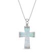 Gemminded 925 Sterling Silver Created Opal Cross Pendant with.012 cttw Diamond - 18 Inch Box Chain