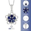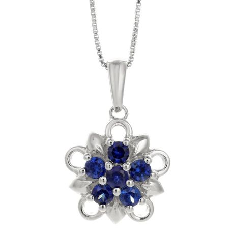 Gemminded 925 Sterling Silver Created Sapphire Flower Pendant - 18 Inch Box Chain
