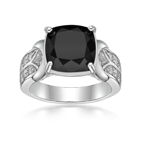 Gemminded 925 Sterling Silver Cushion Cut Black Onyx Ring with White Topaz Accent