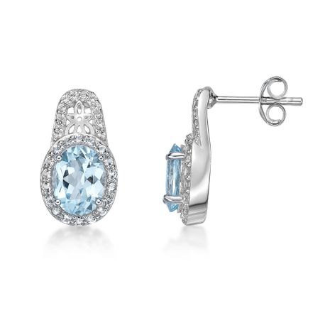 Gemminded 925 Sterling Silver Earrings with 8x6 Oval Cut Blue Topaz with White Topaz Accents