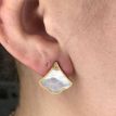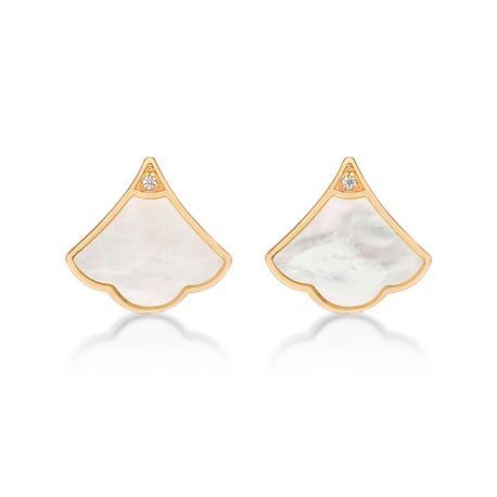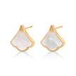 Gemminded 925 Sterling Silver Mother of Pearl Fan Stud Earrings with Yellow Gold Plating Friction Back
