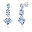 Introducing our ISQA Certified Blue Topaz Dangling Earrings in 925 Sterling Silver. These earrings feature three stunning gemstones in a pear, oval, and square shape, adding a touch of elegance to any outfit. With friction backs, they stay securely in place for all-day wear.
