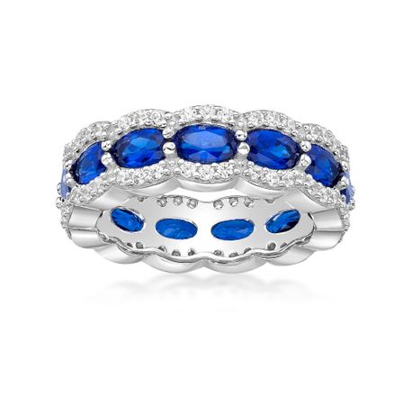 Elegant and enchanting, this 925 Sterling Silver Oval Cut Created Sapphire Wedding Band ring with Created White Sapphire Accent will take her breath away. The stunning blue hue of the created sapphire perfectly complements the intricate silver band. Designed especially for women, this ring is the epitome of timeless beauty. Whether it's for a wedding or a special occasion, this ring will make her feel like a queen.