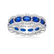 Gemminded 925 Sterling Silver Oval Cut Created Sapphire Wedding Band ring with Created White Sapphire Accent