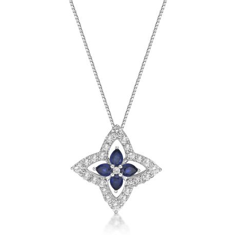 Elegant and captivating, this 925 Sterling Silver Pendant with a mesmerizing 4x3 Pear Shaped Created Sapphire surrounded by dazzling Created White Sapphire Accents is the ultimate expression of grace and style. With a matching 18-inch Box Chain, it is the perfect accessory for any occasion. Crafted for the modern woman, its deep blue hues exude confidence and allure. Made with premium quality materials, this pendant is a timeless masterpiece that will leave a lasting impression.