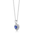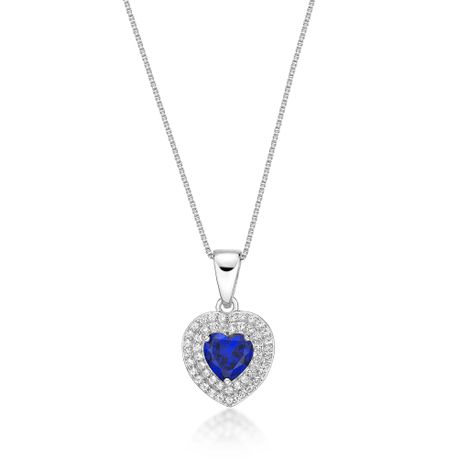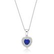Gemminded 925 Sterling Silver Pendant with 6 MM Heart Shaped Created Sapphire and Created White Sapphire Double Halo - 18 Inch Box Chain