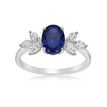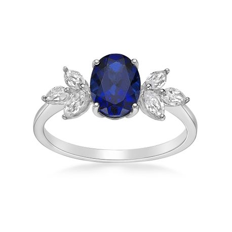 Gemminded 925 Sterling Silver Ring with 8x6 Oval Cut Created Sapphire and Created White Sapphire Shoulders