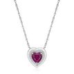 Gemminded 925 Sterling Silver with 6 MM Heart Shaped Created Ruby Pendant Necklace with Created White Sapphire and White Enamel Halo - 18 Inch Rope Chain