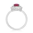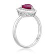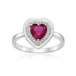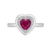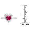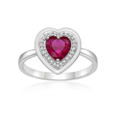 925 Sterling Silver with 6 MM Heart Shaped Created Ruby Ring with Created White Sapphire and White Enamel Halo