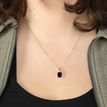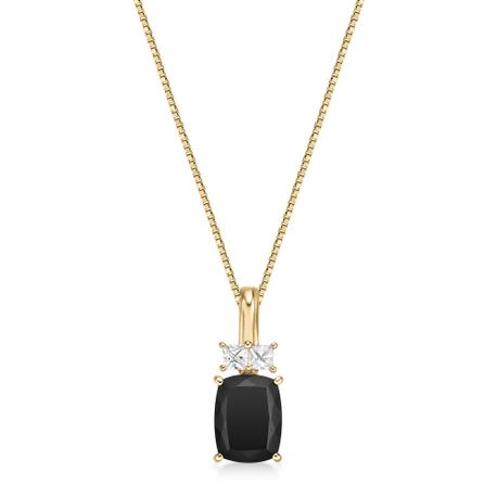 Gemminded 10K Yellow Gold 9x7 mm Cushion Cut Black Onyx Dangeling Pendant with Created White Sapphire Accent - 18 Inch Box Chain