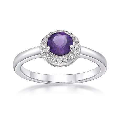 Gemminded 0.40 Round Amethyst 925 Sterling Silver Ring with 0.96 White Topaz