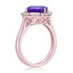 Gemminded Rose Gold Plated Sterling Silver 9 mm Cushion Cut Amethyst Ring with Created White Sapphire Accents