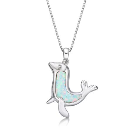 Dive into elegance with our stunning Sterling Silver Created Opal Sea Lion Pendant. Embellished with .015 ctw Diamonds, this mesmerizing pendant showcases the majestic beauty of the sea lion. Crafted with 925 sterling silver, it radiates a timeless charm. Perfect for women, this pendant comes in a box and features a spring ring closure for secure wear. Let the iridescent hues of the created opal transport you to the depths of the ocean. Capture the magic of the sea with this sea lion pendant.