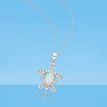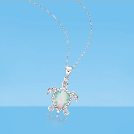 Add a touch of elegance and charm to your outfit with this exquisite Sterling Silver Created Opal Turtle Pendant. Crafted for the modern millennial woman, this pendant features a beautifully crafted turtle pendant adorned with .015 cttw Diamonds for a touch of sparkle. Made with 925 sterling silver, this pendant is both durable and high-quality. The created opal in the center adds a pop of color and makes it perfect for both casual and formal occasions. It comes in a stylish box, making it
