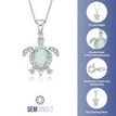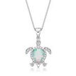 Gemminded Sterling Silver Created Opal Turtle Pendant with .015 cttw Diamonds