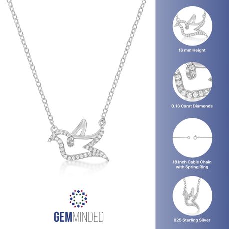 Gemminded Sterling Silver Dove Necklace with Round Diamond, 0.13 Cttw