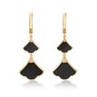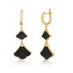 Gemminded Black Onyx Dangle Drop Earrings for Women in 925 Sterling Silver with Yellow Gold Plating Hinge Post