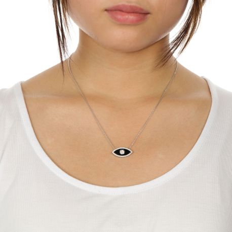 Gemminded 925 Sterling Silver Black Onyx Evil Eye Necklace with Created White Sapphire - 18 Inch Cable Chain