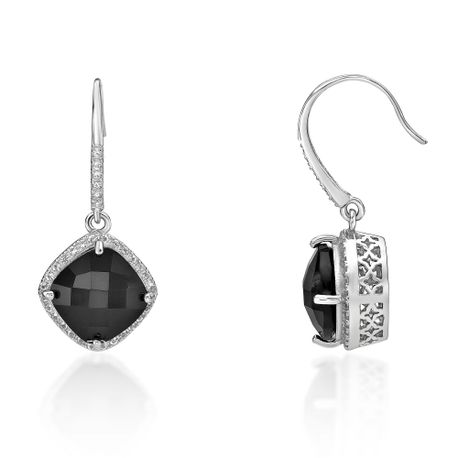 Geminded 925 Sterling Silver 10MM Checkered Pattern Cushion-Cut Black Onyx Fish Hook Earrings with Created White Sapphire Accent