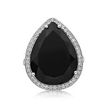 Gemminded 925 Sterling Silver 20x15 Pear Shape Black Onyx Ring with White Topaz Accent