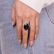 Command attention with timeless elegance. This women's ring features a striking 20x15mm pear-shaped black onyx, framed by shimmering white topaz accents, all set in luminous 925 sterling silver. The deep black stone evokes mystery and strength, while the graceful design adds a touch of sophistication to any look. Crafted for women who embrace bold beauty with refined style—it's more than a ring, it's a signature statement.